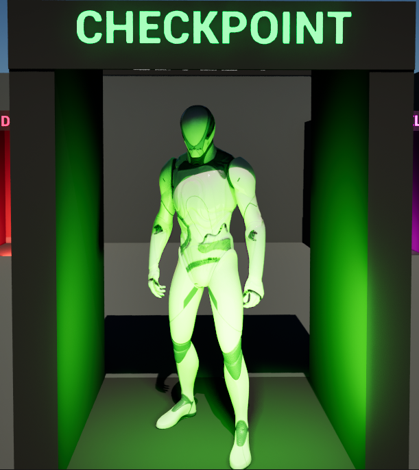 The dedicated checkpoint manager actor to control saving, loading, and respawn logic. Trigger actors are used to activate checkpoints, handle death events, and perform level transitions. Player state is restored using saved transforms and level data, allowing consistent respawns even when moving between maps.