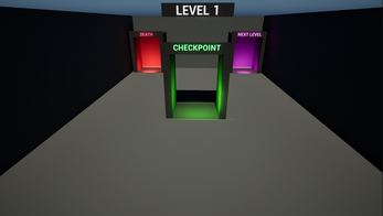 The demo level clearly demonstrates checkpoint activation, death respawn behavior, and level transitions using simple visual triggers. It is meant as a reference implementation, not a finished game environment.