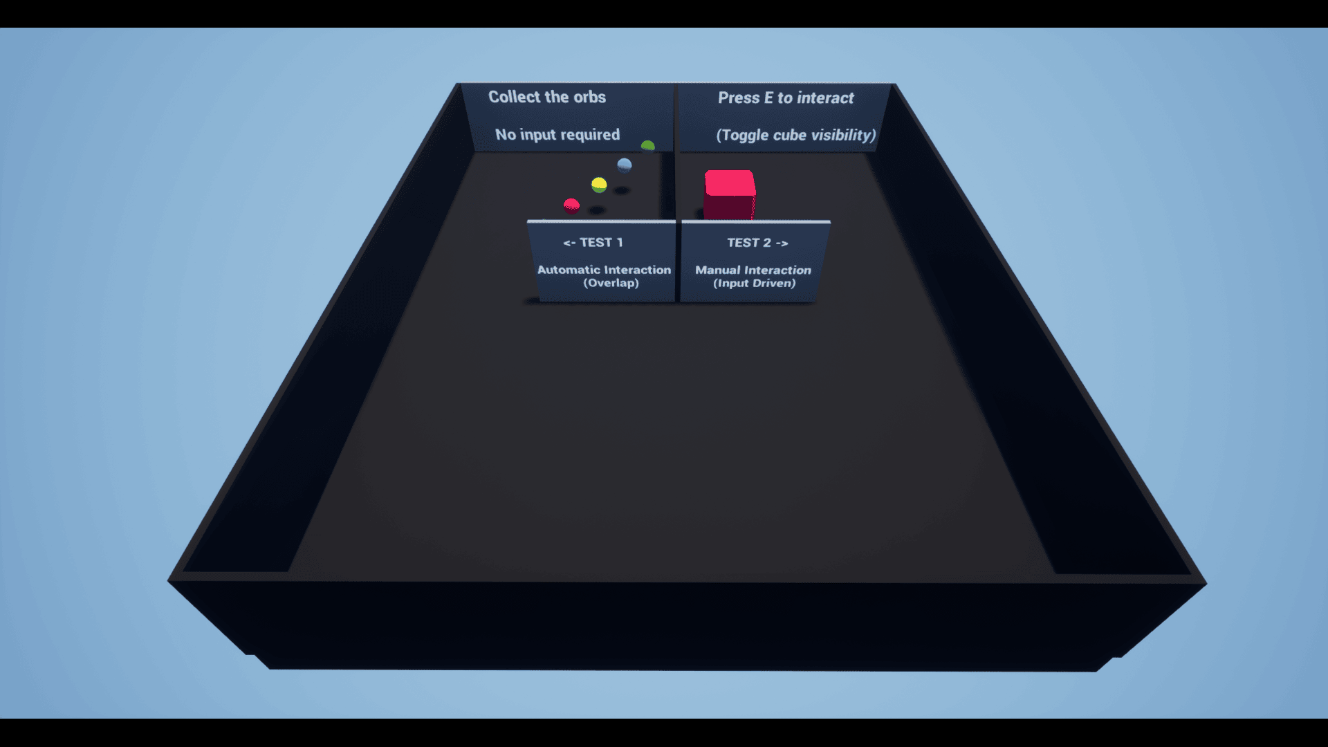 The demo project includes examples of automatic pickups and manual “Press E” interactions to show how the system can be used in real gameplay scenarios.