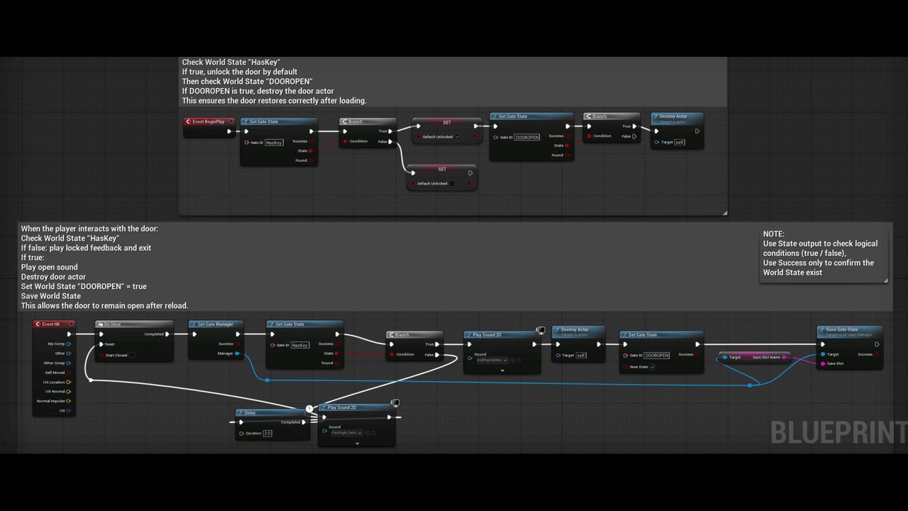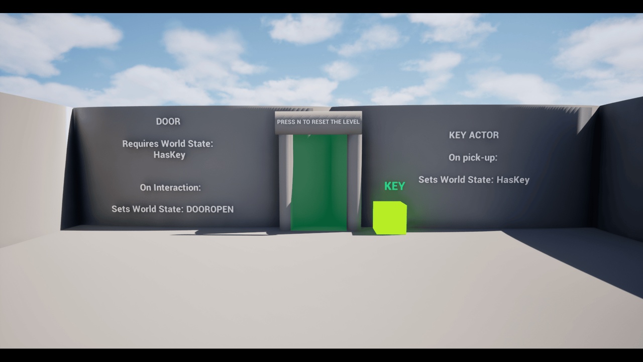 - Picking up the key sets a World State (HasKey)